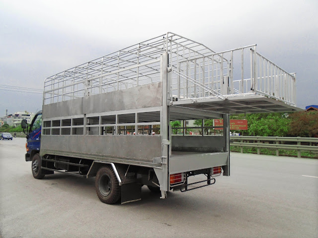 Thùng xe được đóng chuyên dụng, thành cao, sàn chống trượt, thông gió tốt giúp đảm bảo sức khỏe gia súc trong suốt hành trình.